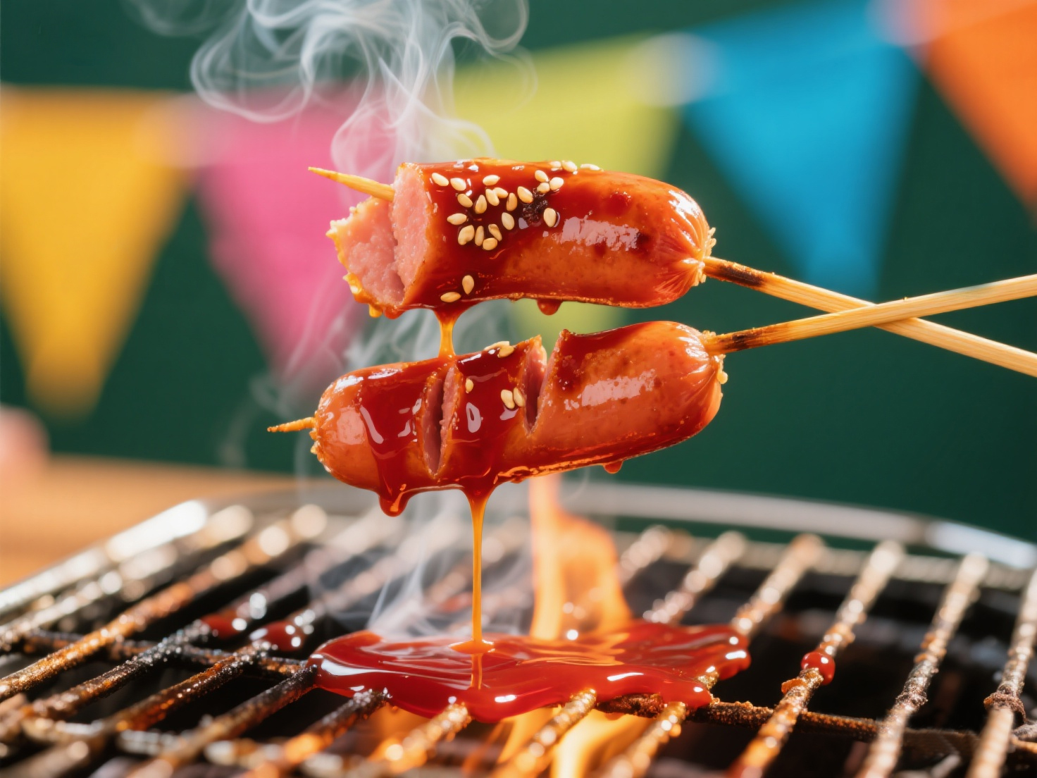 ① 穿刺防爆:竹簽 泡水30分鐘 → 每串穿2根腸 → 牙簽每腸扎1孔